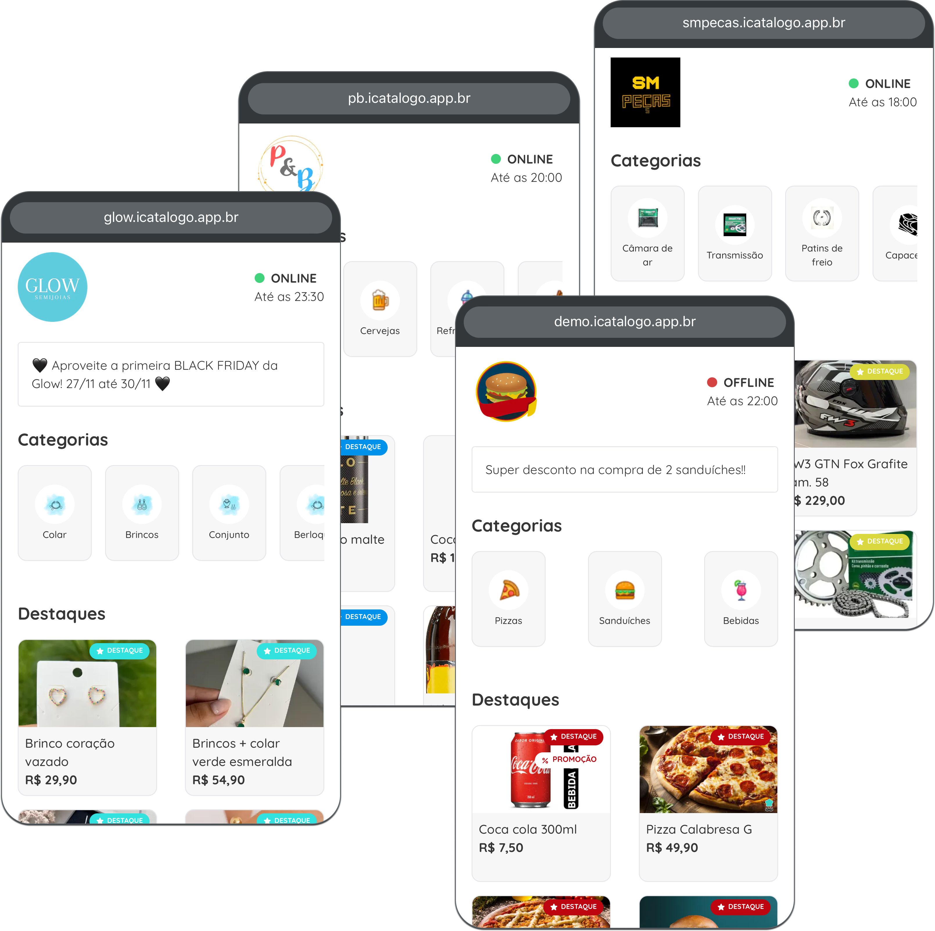 Seu catálogo com a cara da sua empresa, através do acesso administrador você consegue realizar cadastro de produtos, promoções, configurações como taxa de entrega, cores, horário de funcionamento e muito mais!